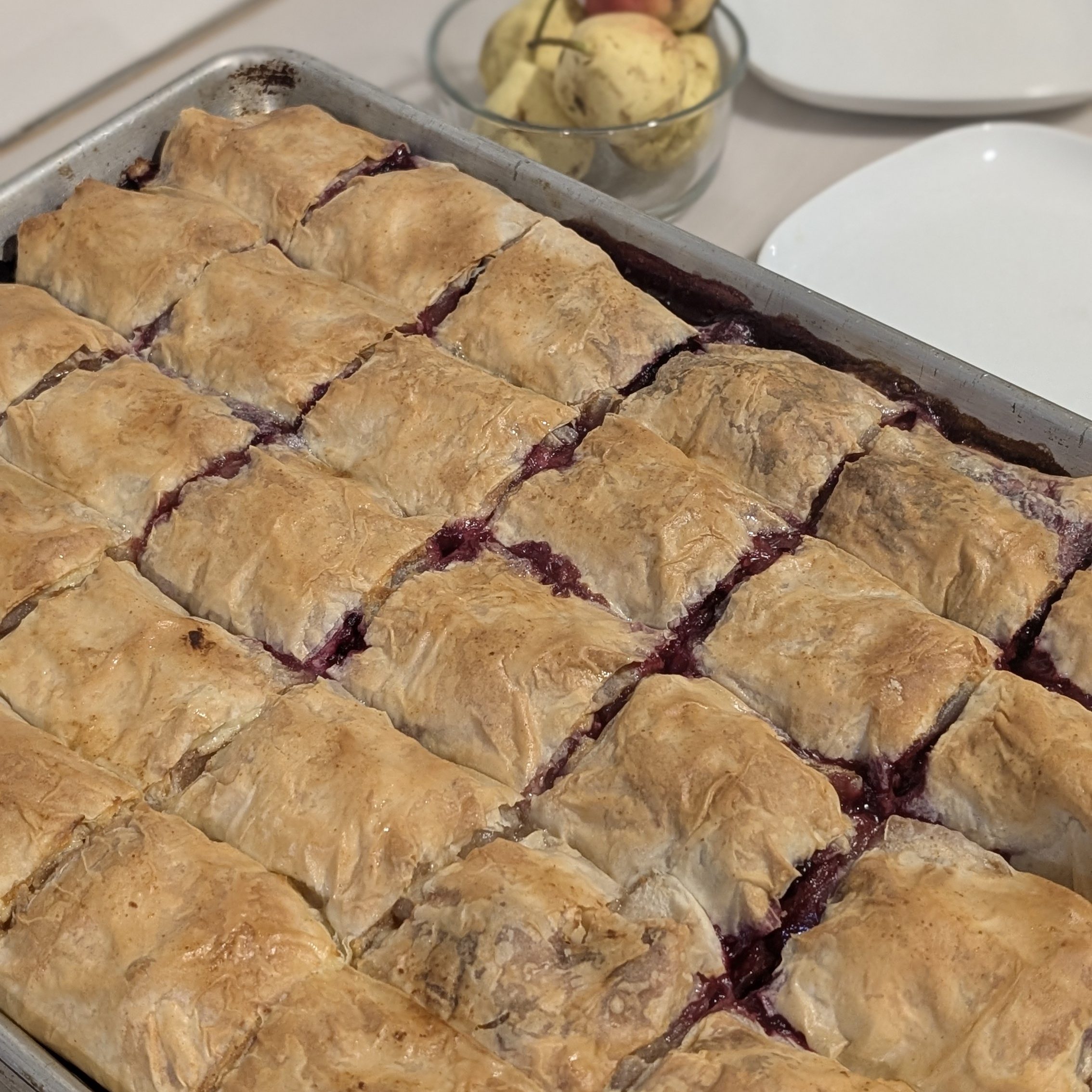 Tip#3 Don’t skip cutting the strudels before baking, it helps steam to vent which will help the top of the phyllo stay crisp.