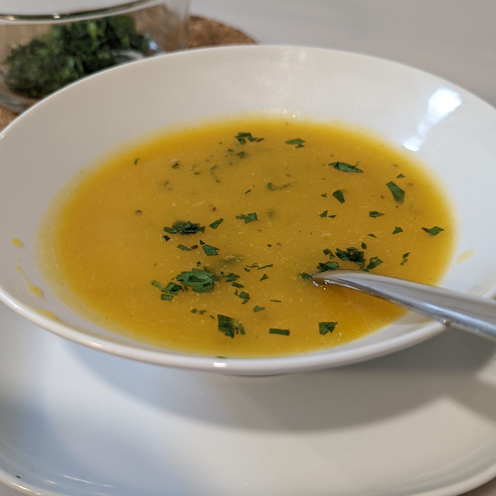 Butternut squash soup is a warm and inviting dish embodying comfort food’s essence. This velvety soup is crafted from my garden’s finest, ripe butternut squash. The vibrant orange hue of the soup is not only visually appealing but also indicative of the rich nutrients packed within. Each spoonful offers a delightful balance of flavours, with hints of nutmeg and cinnamon that dance on the palate, creating a harmonious, soothing and satisfying blend.