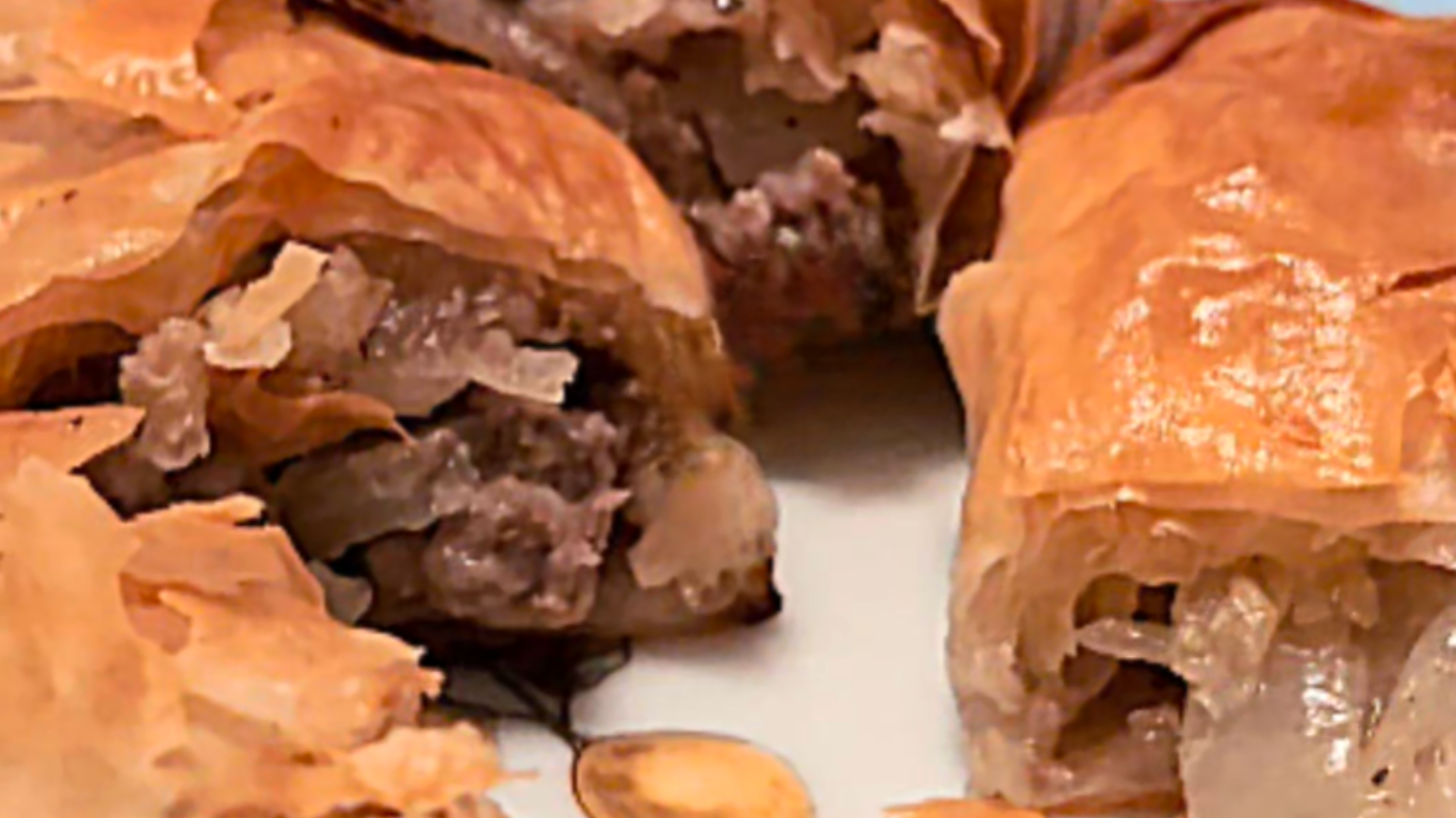 - Remove from oven. Serve warm with your favourite yogurt dip or sauce next to these phyllo meat rolls for dipping.