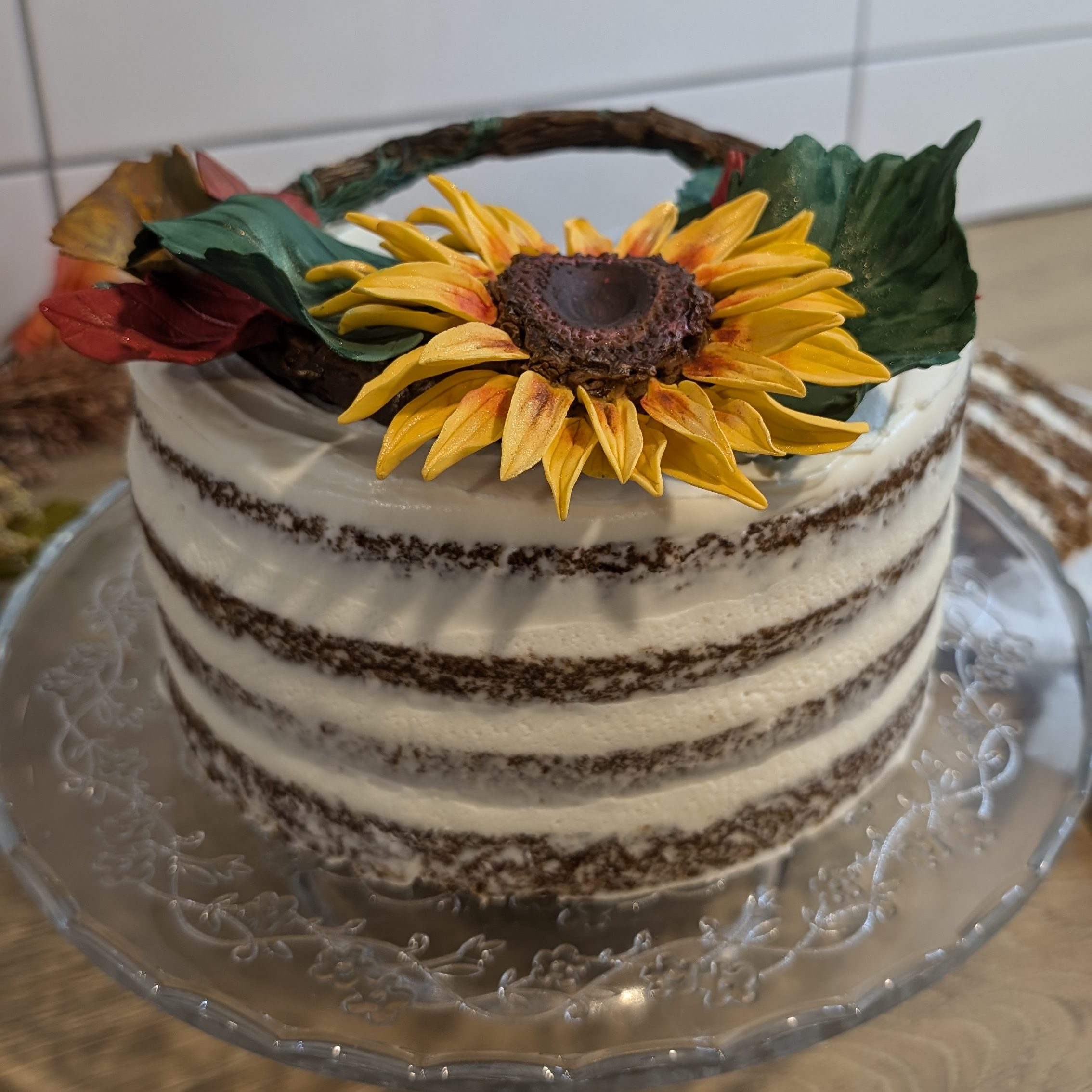 The crowning glory of this carrot cake is its luscious cream cheese frosting, which envelopes each layer in a rich, velvety embrace. The frosting is expertly blended to achieve the perfect balance of sweetness and tang, enhancing the cake’s flavours without overwhelming them. This naked cake design showcases the beautiful layers, allowing carrot cake to peek through, creating a rustic yet elegant presentation. Simple decorations, such as a sprinkle of chopped walnuts or a few delicate edible flowers, add a touch of charm without detracting from the cake’s natural beauty.