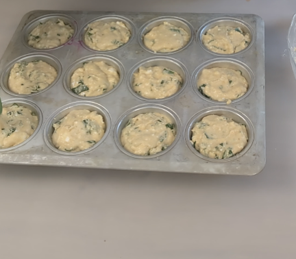 - Use a large scoop or spoon to divide the batter evenly into the muffin pan.