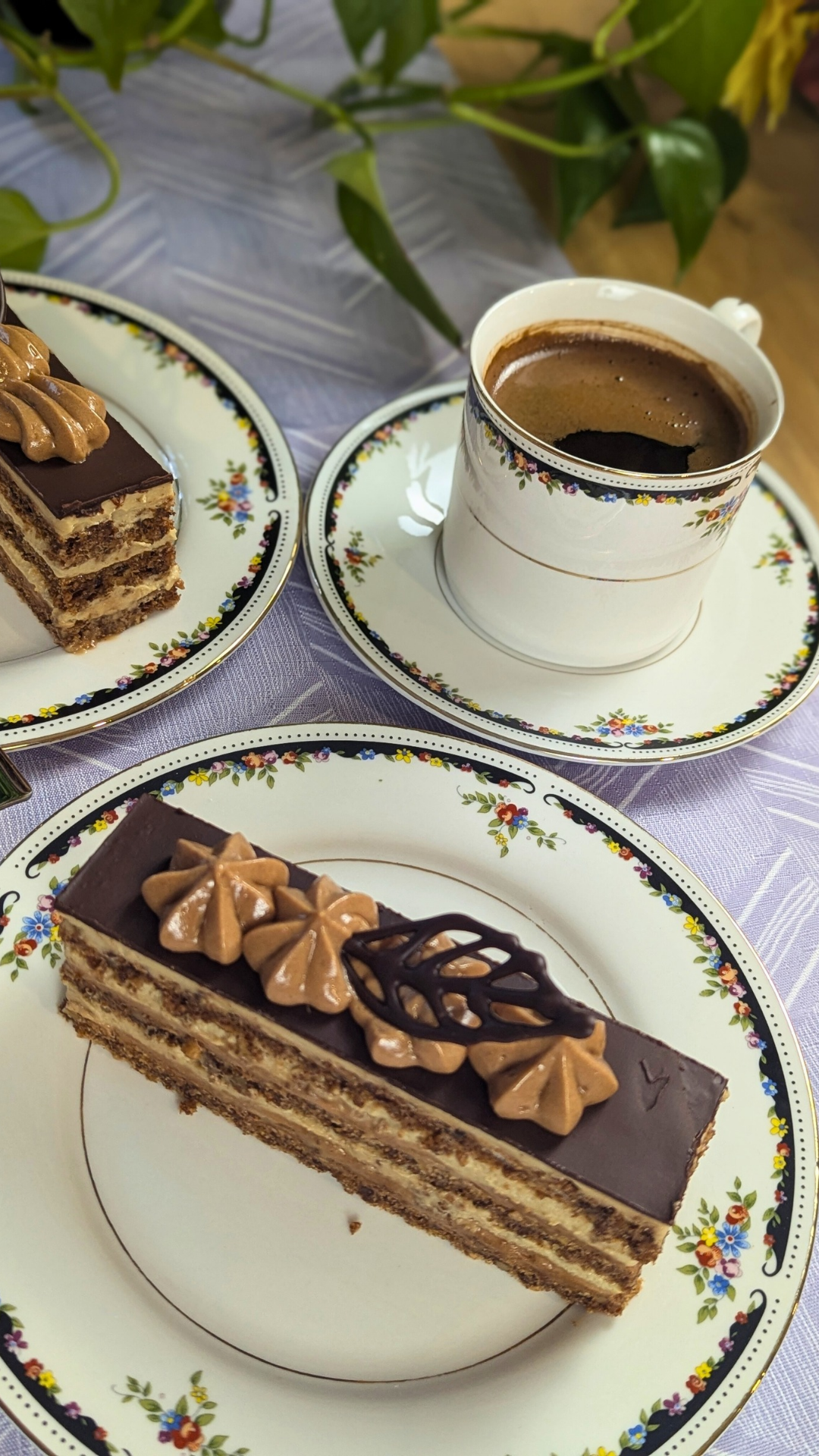 This layered hazelnut cake is the ultimate treat for coffee and chocolate lovers. Featuring three delicate layers of hazelnut sponge, two types of buttercream—one rich with coffee and pastry cream, the other silky and chocolatey, and finished with a glossy and thin layer of chocolate. This dessert is pure decadence. Elegant enough for celebrations and irresistible with every bite, it’s a dessert worth the effort.