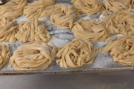 - Testo pospite brašnom i ubacite u rezač za fettuccine ili oblik po izboru.