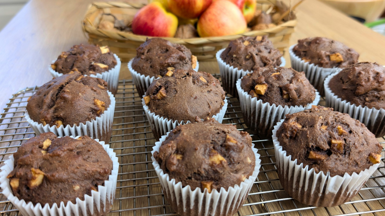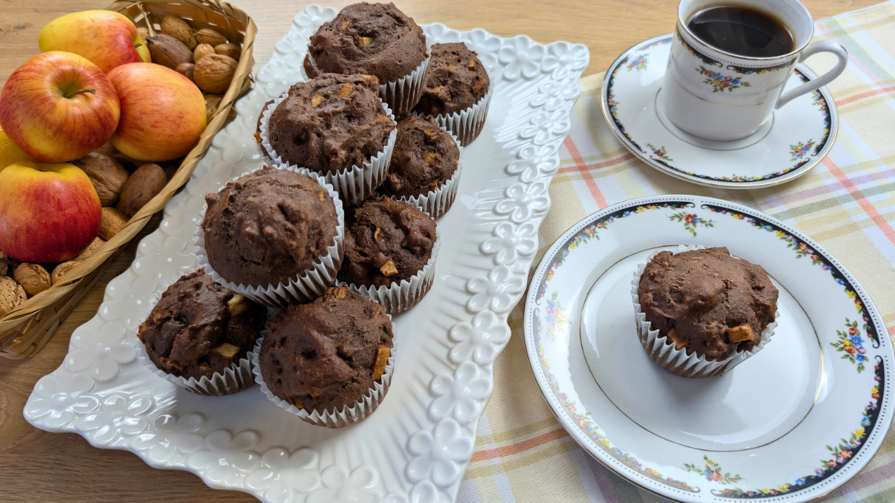 Ovi čokoladni mafini sa jabukama od spelte su savršeni za hladne dane — mekani, sočni i puni toplih začina. Prave se u jednoj činiji, brzo i jednostavno, a idealni su za doručak, užinu ili uz kafu.