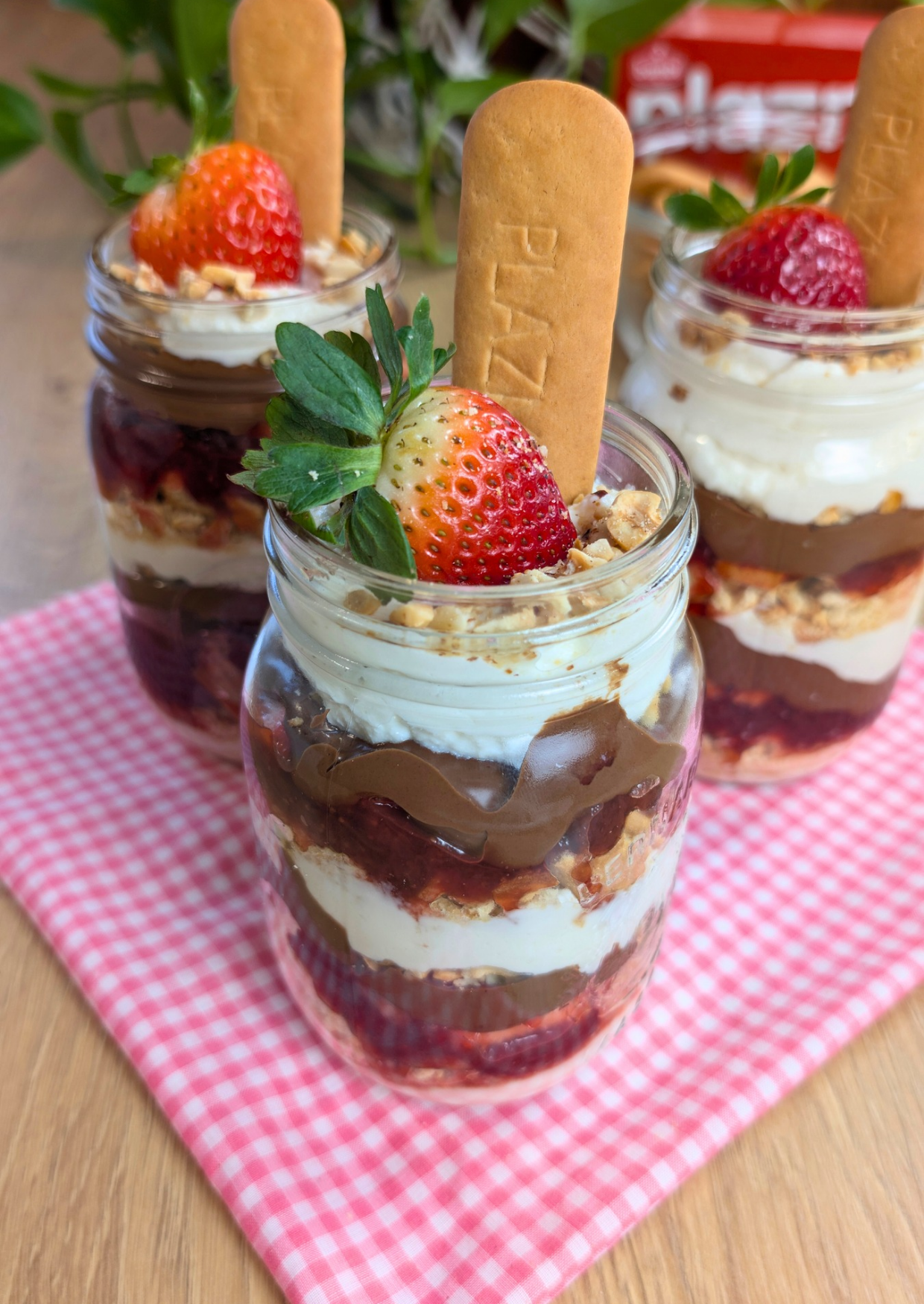 Today we’re turning that iconic, timeless Balkan classic into something just as comforting — a beautiful layered dessert in a jar. Creamy ricotta filling, sweet strawberry jam, fresh berries and Nutella, all hugging those familiar Plazma crumbs.