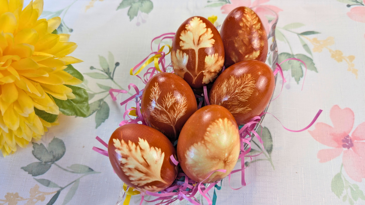 Decorating eggs with leaves pressed against the shell is also a traditional technique, creating unique botanical prints—each egg becomes one of a kind.